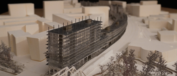 Wie kann man eine Stadt auf einer Stadt bauen? Dieses Projekt schlägt einen Weg vor, um verlassene Infrastrukturen in atypische und lebendige Lebensräume zu verwandeln. Es hebt das Kulturerbe hervor und zeigt dessen Potenzial für eine Umnutzung auf. Um in diesem weitgehend bebauten Kontext zu intervenieren, befasst sich das Projekt zunächst mit dem Bestehenden und seinen Qualitäten. Durch die Umwandlung des Geschäftsgebäudes in Wohnungen in Verbindung mit dem öffentlichen Raum ermöglicht der Vorschlag eine neue Dynamik für das Viertel. Angesichts der enormen Ausmaße des bestehenden Gebäudes sieht das Projekt architektonische Maßnahmen vor, die es jeder Wohnung ermöglichen, ein Maximum an Licht einzufangen. Diese Arbeit, die den Orten und den Gegebenheiten des Gebäudes, das sie nutzt, Rechnung trägt, berücksichtigt alle Massstäbe, vom Territorium bis zum Konstruktionsdetail, und befasst sich gleichzeitig mit aktuellen städtischen und denkmalpflegerischen Fragen. Sie ist somit Teil eines entschlossenen, nachhaltigen Ansatzes, der die Qualitäten des Gebäudes respektiert.