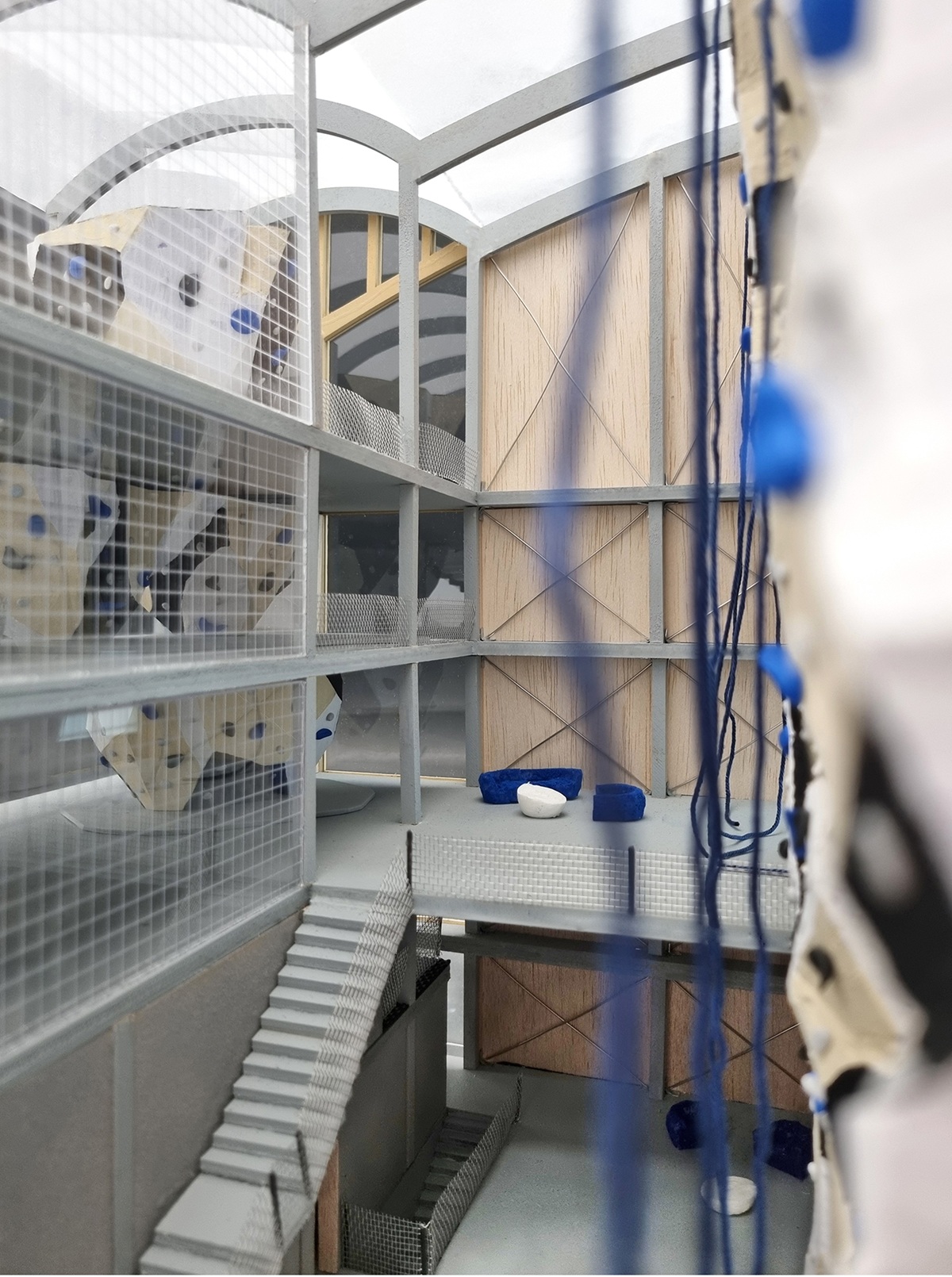 Auf dem Baufeld H2 des Zwhatt-Areals in Regensdorf entsteht ein architektonisches Konzept für einen neuen Sport- und Begegnungsraum. Das Projekt reagiert auf zwei markante infrastrukturelle Lücken in der Gemeinde: Es fehlt ein öffentlich zugängliches Schwimmbad sowie eine Kletterhalle. Im entworfenen Ensemble werden Kletterhalle und Schwimmbad als eigenständige, aber funktional und räumlich verbundene Einheiten realisiert. Das bestehende Gebäude wird erhalten, saniert und umgenutzt. Auf der Nachbarparzelle wird das neue öffentliche Schwimmbad mit einem 50-Meter-Wettkampfbecken und einer separaten Sprungzone realisiert. Das Projekt versteht sich nicht nur als bauliche Antwort auf bestehende Infrastrukturlücken, sondern auch als gesellschaftlicher Beitrag zur Stadtwerdung Regensdorfs: Es schafft attraktive Orte für Sport, Erholung, Begegnung und kulturelle Nutzung in einem dynamischen Entwicklungsgebiet.