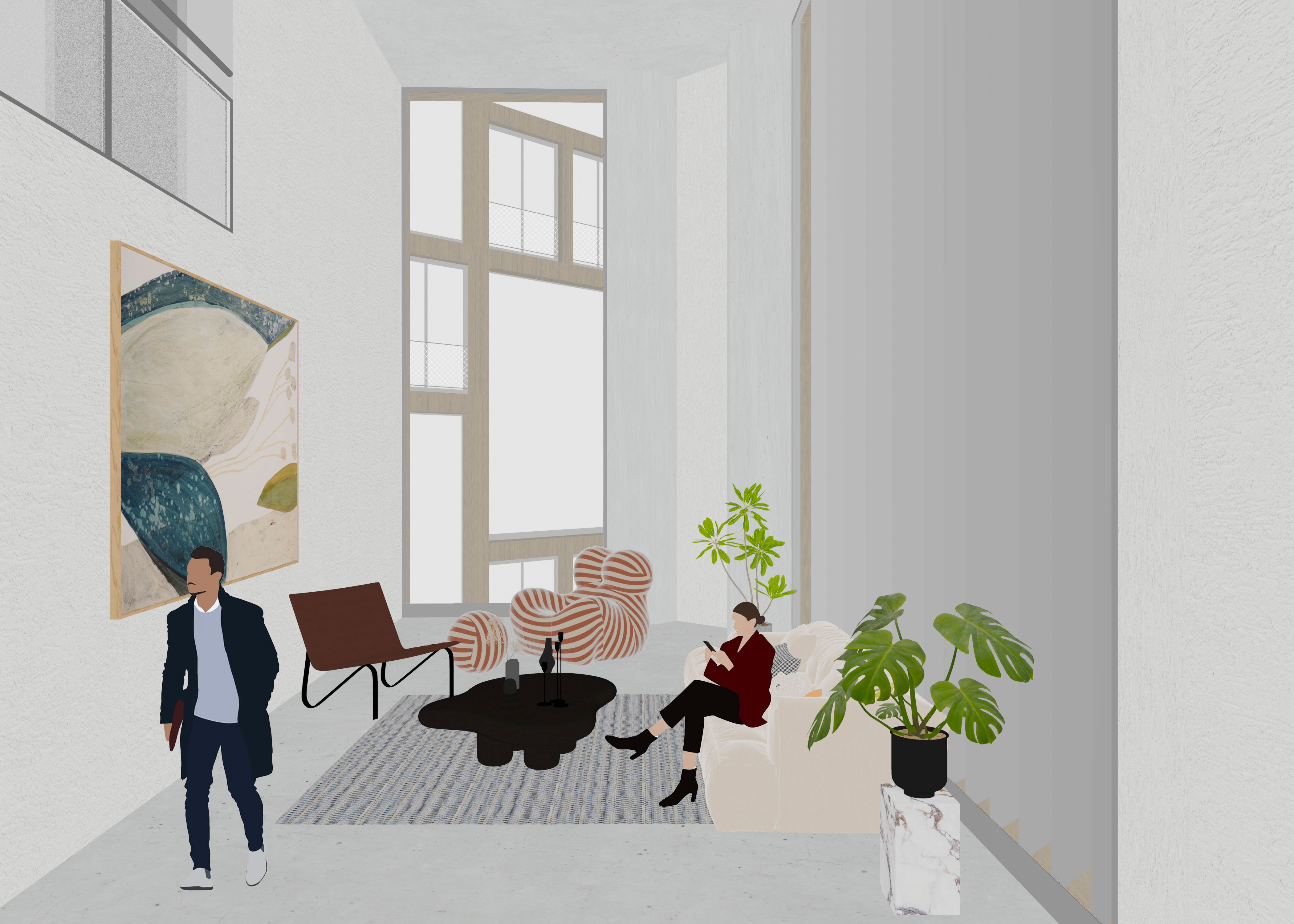 The rapidly growing settlement area in the Limmat Valley is increasingly coming into conflict with existing infrastructure, logistics and agriculture areas. Hybrid programmes can be used to generate higher density and synergies. The large area of Spreitenbach’s SBB marshalling yard is an area of considerable potential to introduce renewable energy on an existing infrastructure and to supplement it with further programmes. The marshalling yard will be expanded to include a solar and biogas power plant. Parabolic mirrors concentrate the direct solar radiation on a single point, generating process heat for the nearby industry and supporting its decarbonisation. The exposed location of the railway station allows algae to be cultivated in photobioreactors, which quickly produce large quantities of biomass. This biomass can be converted into biogas and then into electricity and process heat. Parts of the site can be transformed into a landscape park, characterised by microclimate-specific vegetation.